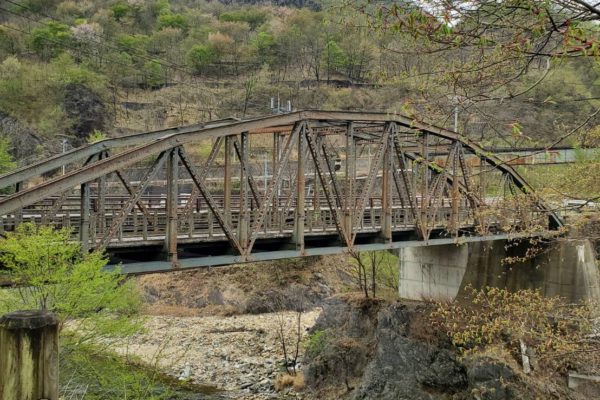 「古河橋」は(市ホームページから一部抜粋)、明治23年に建設されたドイツ国ハーコート社製の鋼製のトラス橋で、工場であらかじめリベット接合を用いて製作した部材を、現場においてはボルト接合のみで短期間で簡易に組み立てられる工法が用いました。近代最初期に整備された足尾銅山の主要施設のうちほぼ完存する唯一の遺構です。また、19世紀後期に世界各地で事業を展開したハーコート社が、施工の簡易性を追求して開発した現場継手にボルトを用いる橋梁のなかで、原位置に残るわが国現存最古の遺構です。平成26年1月に国重要文化財に指定されました。